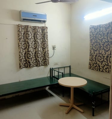 We offer both shared and private rooms with clean, well-ventilated spaces, attached bathrooms, and a homely atmosphere.
