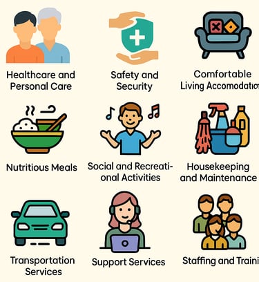 We provide 24/7 care for senior citizens including comfortable accommodation, nutritious meals, medical support, personal hygiene assistance, recreational activities, and emotional well-being programs.